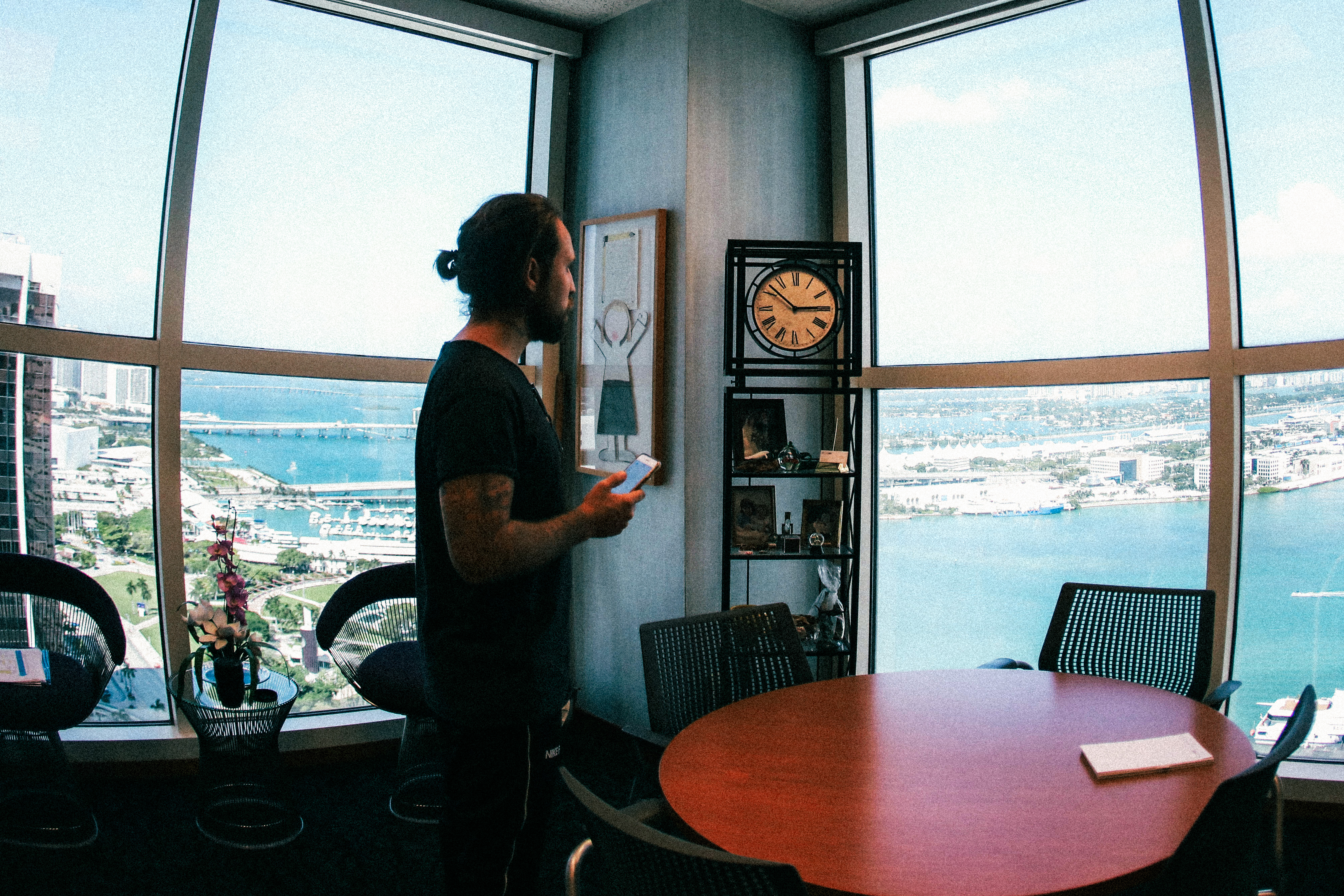 Nosso escritório ficava num lugar chamado Ironside. Uma região de Miami com uma arquitetura que eu amo até hoje: eco-brutalista, industrial no meio de um monte de árvore. Era como se fosse um shopping aberto, com escritórios, lojas e restaurantes espalhados em volta de uma praça central. O nosso ficava ali, de frente para a praça, quase como uma vitrine.